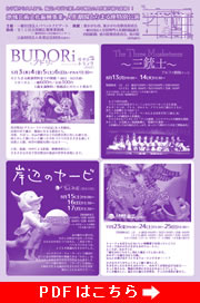 | 料金 | : | 大人=高校生以上 子ども=5歳〜中学生 (3・4歳無料/3歳未満入場不可) (一般大人) 前売1,000円/当日1,200円 (一般子ども)前売600円/当日800円 (会員・特割大人) 前/当 共通600円 (会員・特割子ども)前/当 共通 400円 |