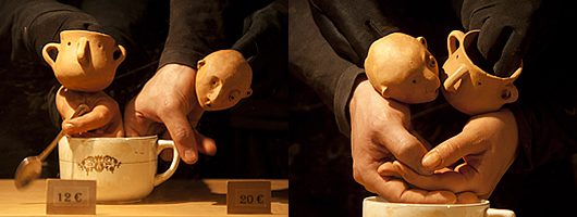陶芸屋のショーウィンドウで、小さなキャラクターは恋と別れを経験し…